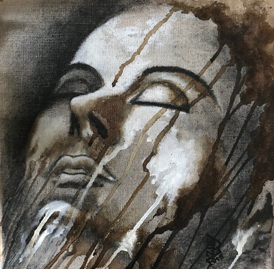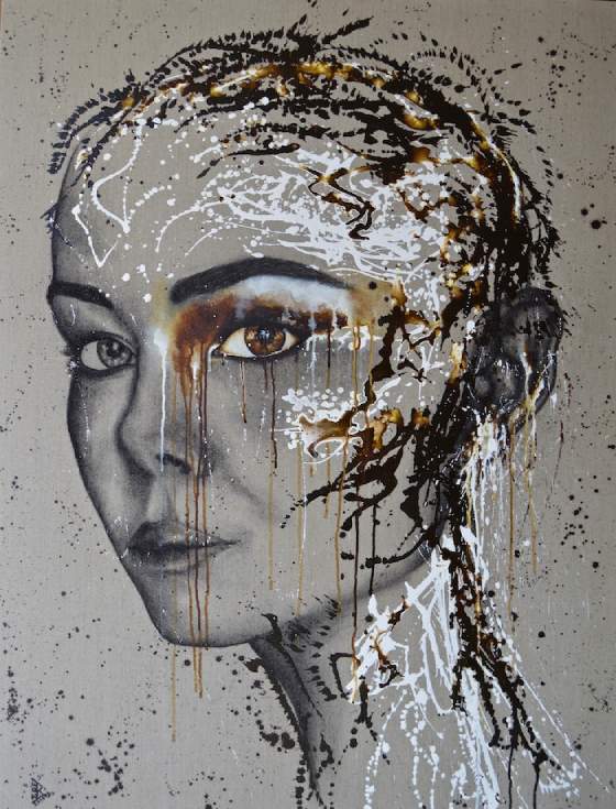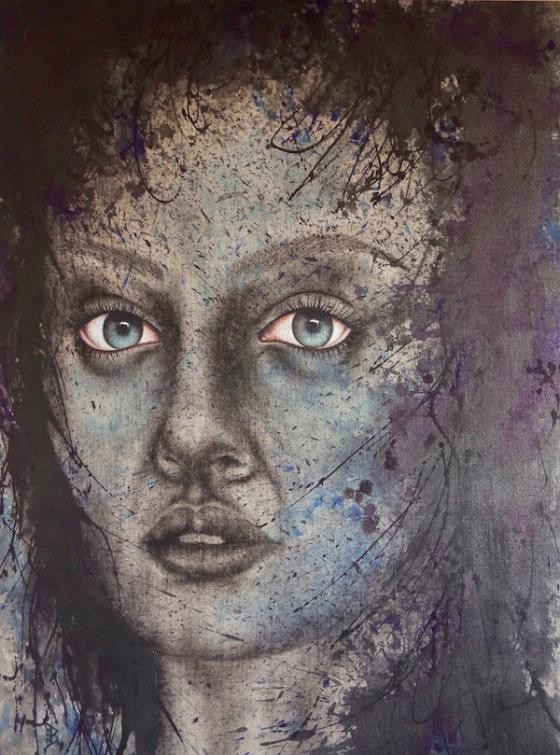 La série « INFINITIF » est constituée de portraits de femmes réalisés au fusain et technique mixte sur toile de lin naturel.
